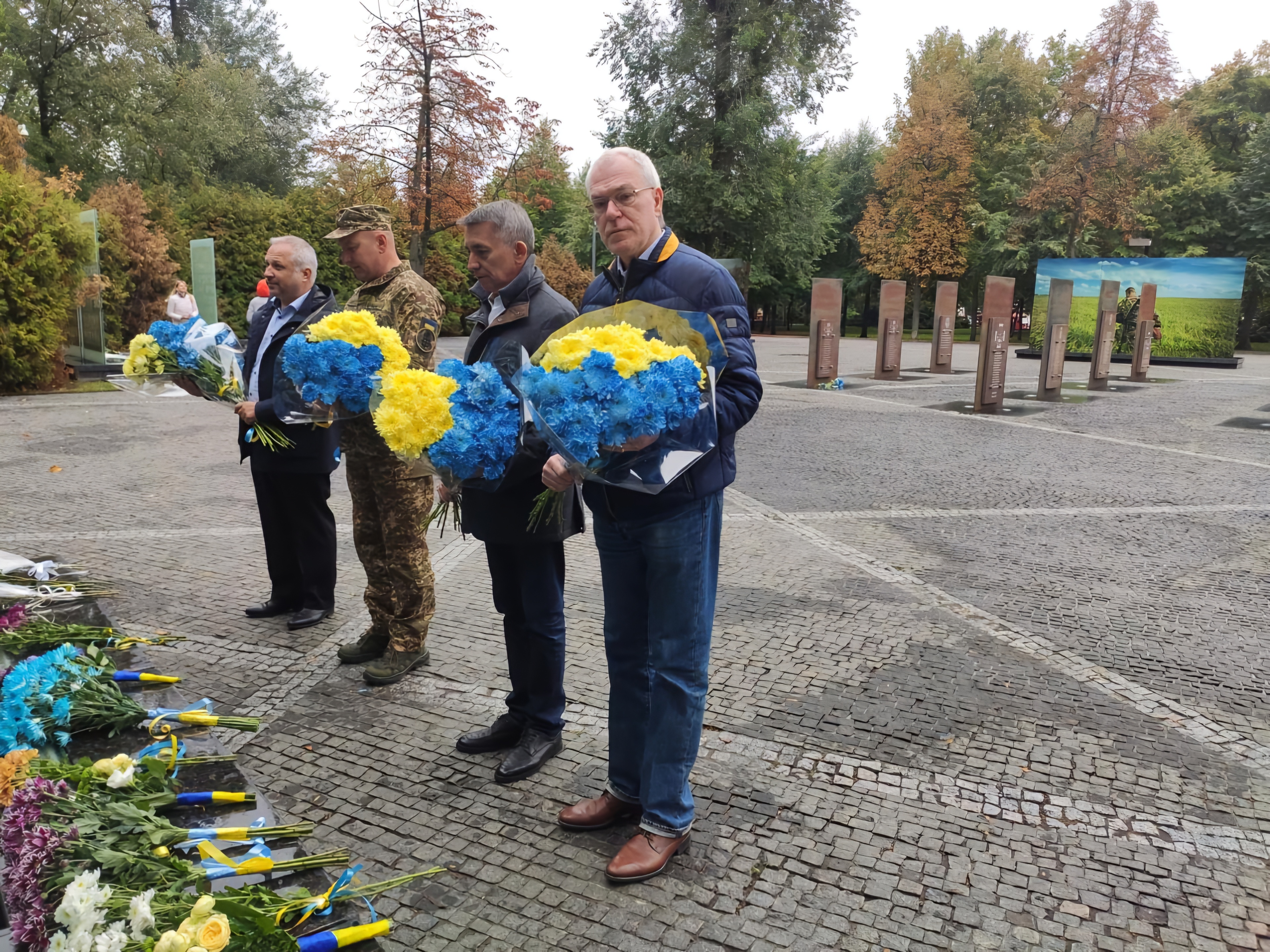 Сьогодні, в День захисників і захисниць України учасники круглого столу: голова Третього апеляційного адміністративного суду Анатолій КОРШУН, голова Дніпропетровського окружного адміністративного суду Володимир ГОРБАЛІНСЬКИЙ, голова Запорізького окружного адміністративного суду Олег ПРУДИВУС, начальник юридичної служби Центрального територіального управління Національної гвардії України, полковник юстиції Олександр НІШТА поклали квіти до меморіального комплексу Алея пам’яті біля Дніпропетровської обласної державної адміністрації, вшановуючи пам'ять про захисників і захисниць, які віддали життя за мирне майбутнє України.