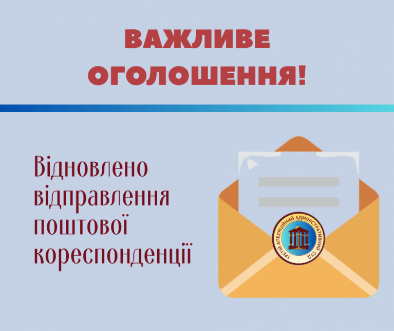 З 04 лютого 2026 року відправлення поштової кореспонденції Третім апеляційним адміністративним судом відновлено.